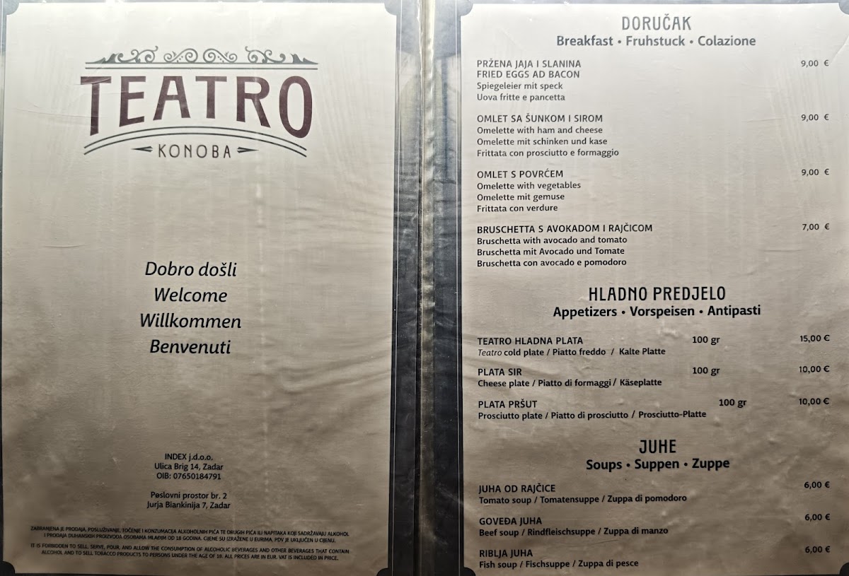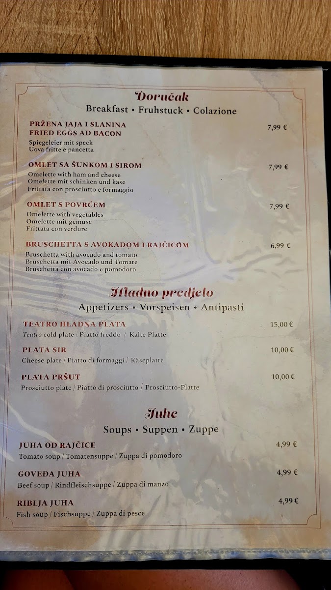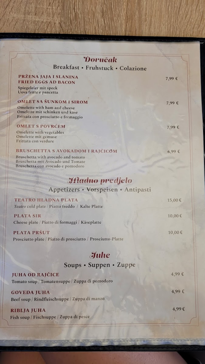 What truly sets Teatro Konoba apart is its exceptional service. Patrons have praised Johnny, a multilingual waiter, for his cheerful demeanor and personalized attention, making diners feel right at home. His expertise in food recommendations is a highlight, ensuring a memorable dining experience.